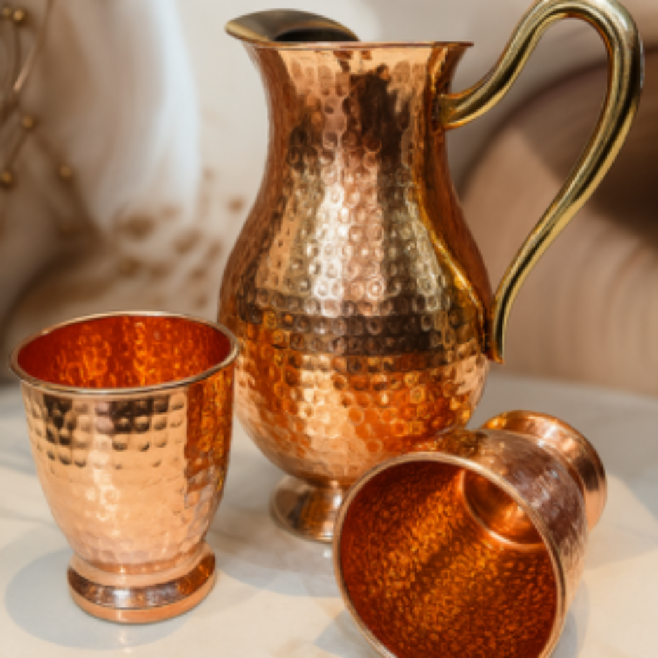 Be the first to review “Royal Copper Jug & Campa hammerred Glasses set”